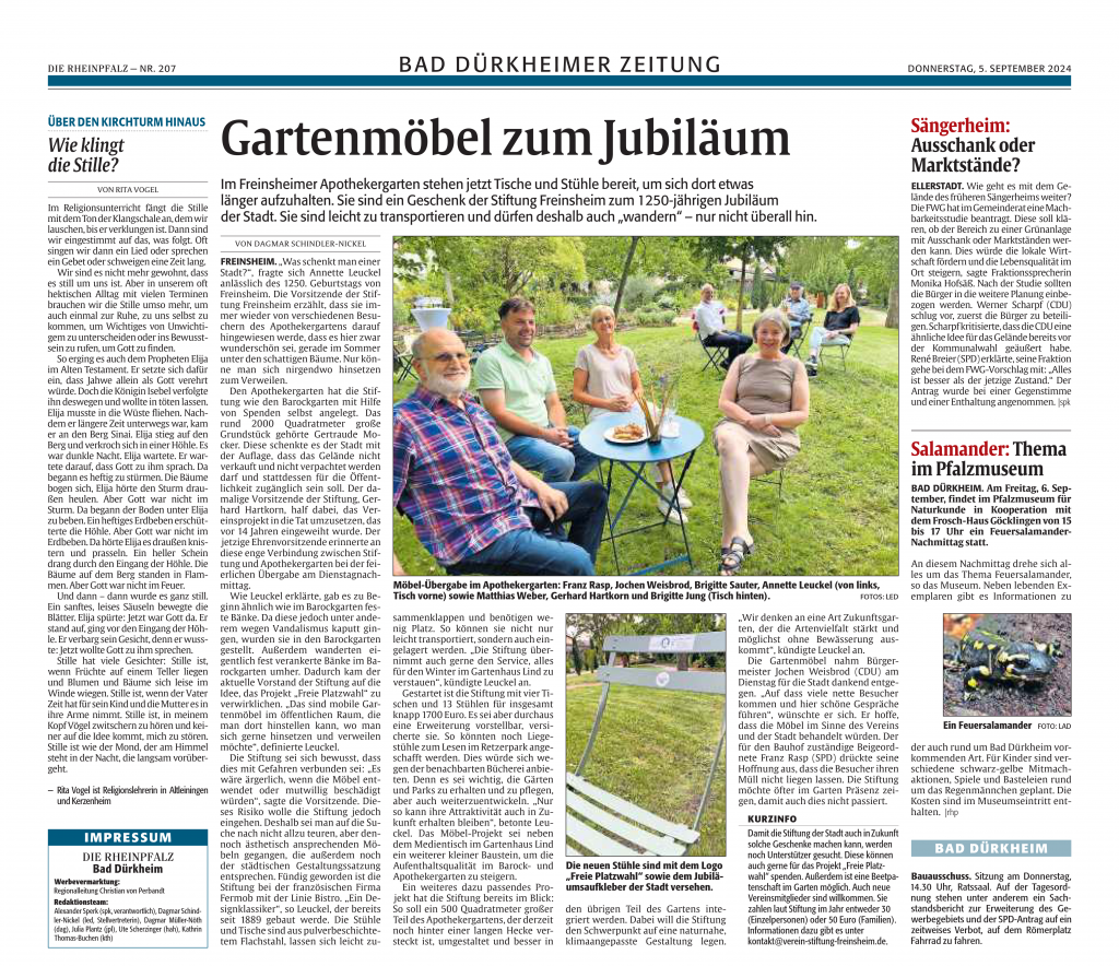 Rheinpfalz, 04.05.2025 Rheinpfalz, 05.09.2024 Rheinpfalz, 21.07.2021 Rheinpfalz, 23.01.2021 Rheinpfalz, 08.07.2017 Rheinpfalz, 09.09.2013 Rheinpfalz, 07.09.2021 Rheinpfalz, 20.04.2002 Rheinpfalz, 20.09.2025 Stadtanzeiger, 2013